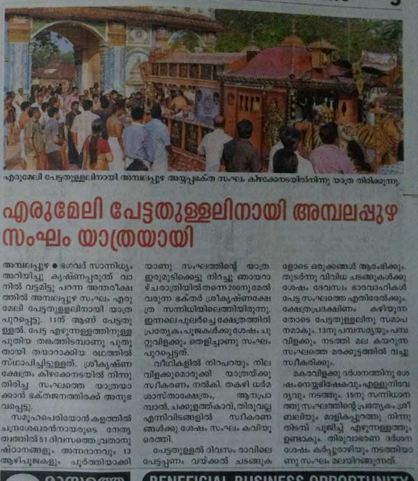 The group is drawn from seven villages in ambalapuzha. The group is lead by a samooha periyon .The group consisting of 350 pilgrims will visit 100 temples. . .